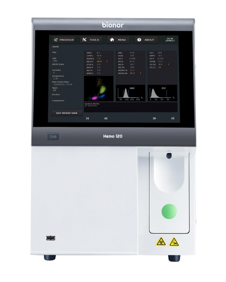 Hemo 120 are used to count and identify blood cells at high speed and accuracy. Hemo 120 analyzers are used to conduct a complete blood count (CBC), which is usually the first test requested by physicians to determine a patients general health status. A complete blood count includes red blood cell (RBC), white blood cell (WBC), hemoglobin, and platelet counts, as well as hematocrit levels.